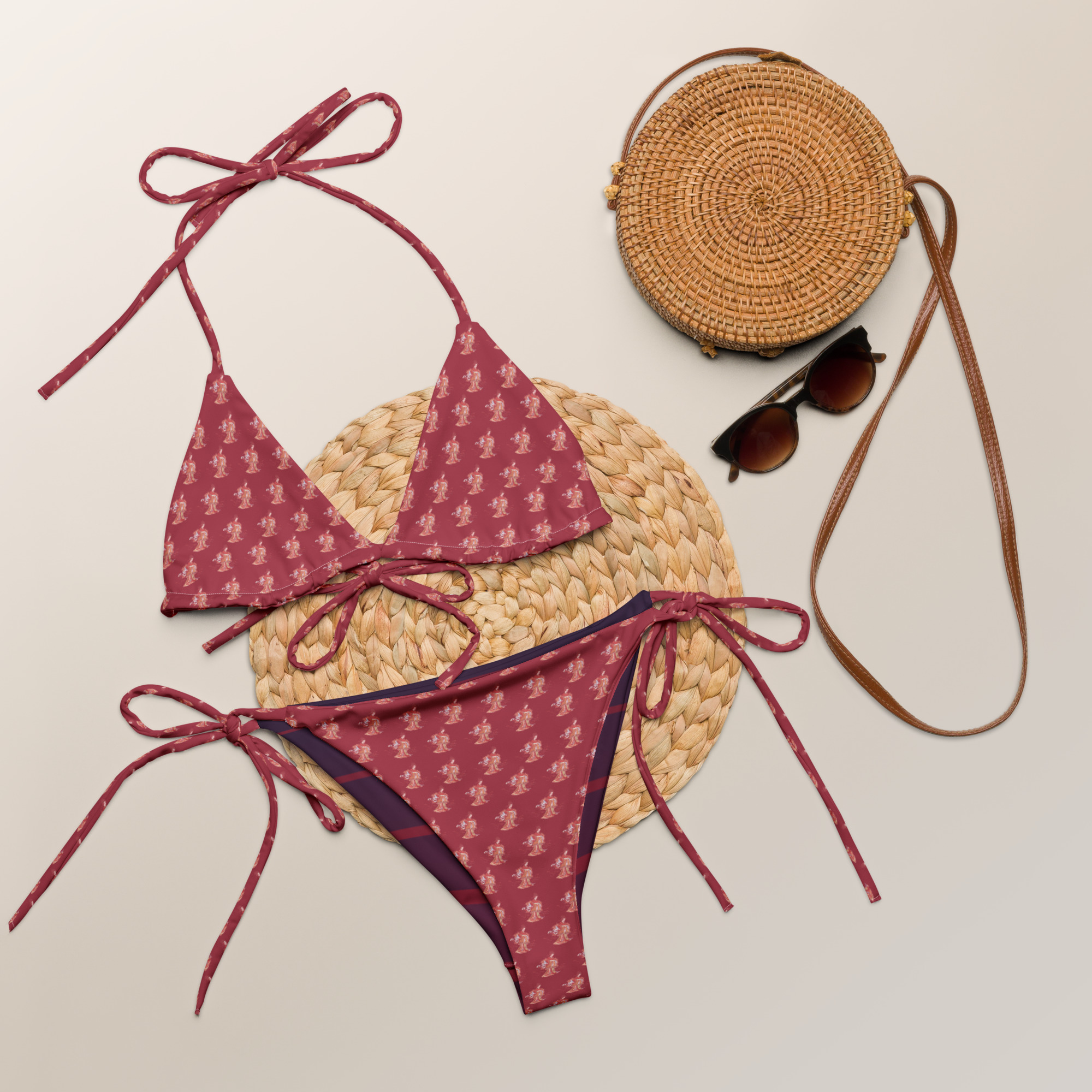 Soyez à l'aise et élégante tout l'été avec ce bikini recyclé all over. Il est fabriqué en polyester doux recyclé à double couche et comporte une protection UPF 50+. Nouez les bretelles comme vous le souhaitez, et à vous les belles baignades !