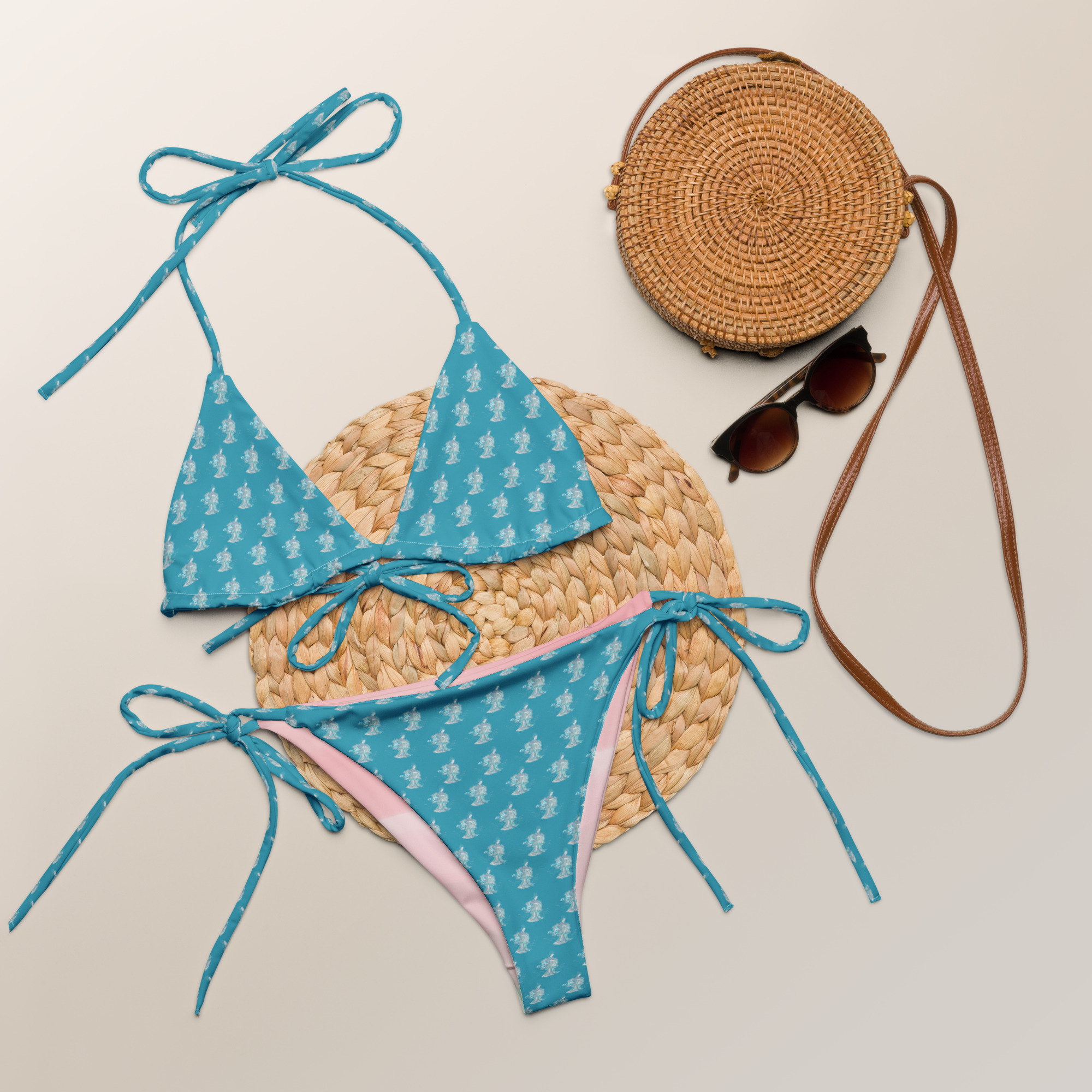 Soyez à l'aise et élégante tout l'été avec ce bikini recyclé all over. Il est fabriqué en polyester doux recyclé à double couche et comporte une protection UPF 50+. Nouez les bretelles comme vous le souhaitez, et à vous les belles baignades !